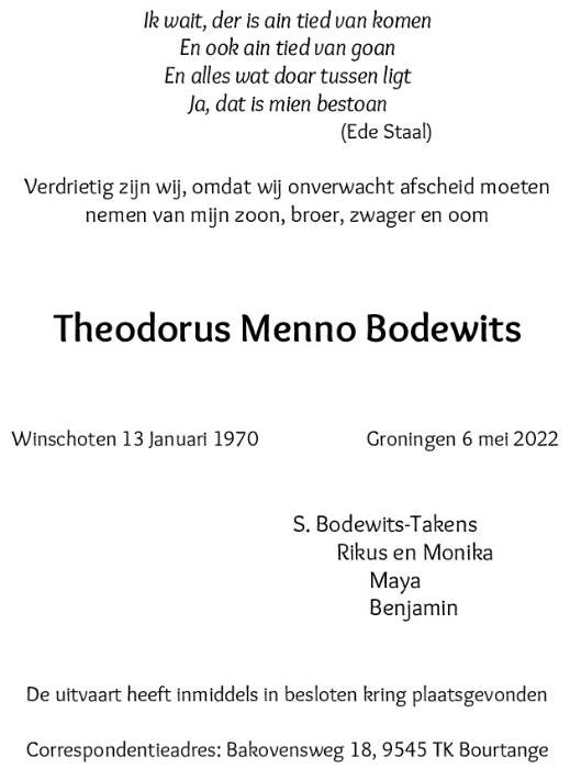 Herdenking ter nagedachtenis aan Theo Bodewits