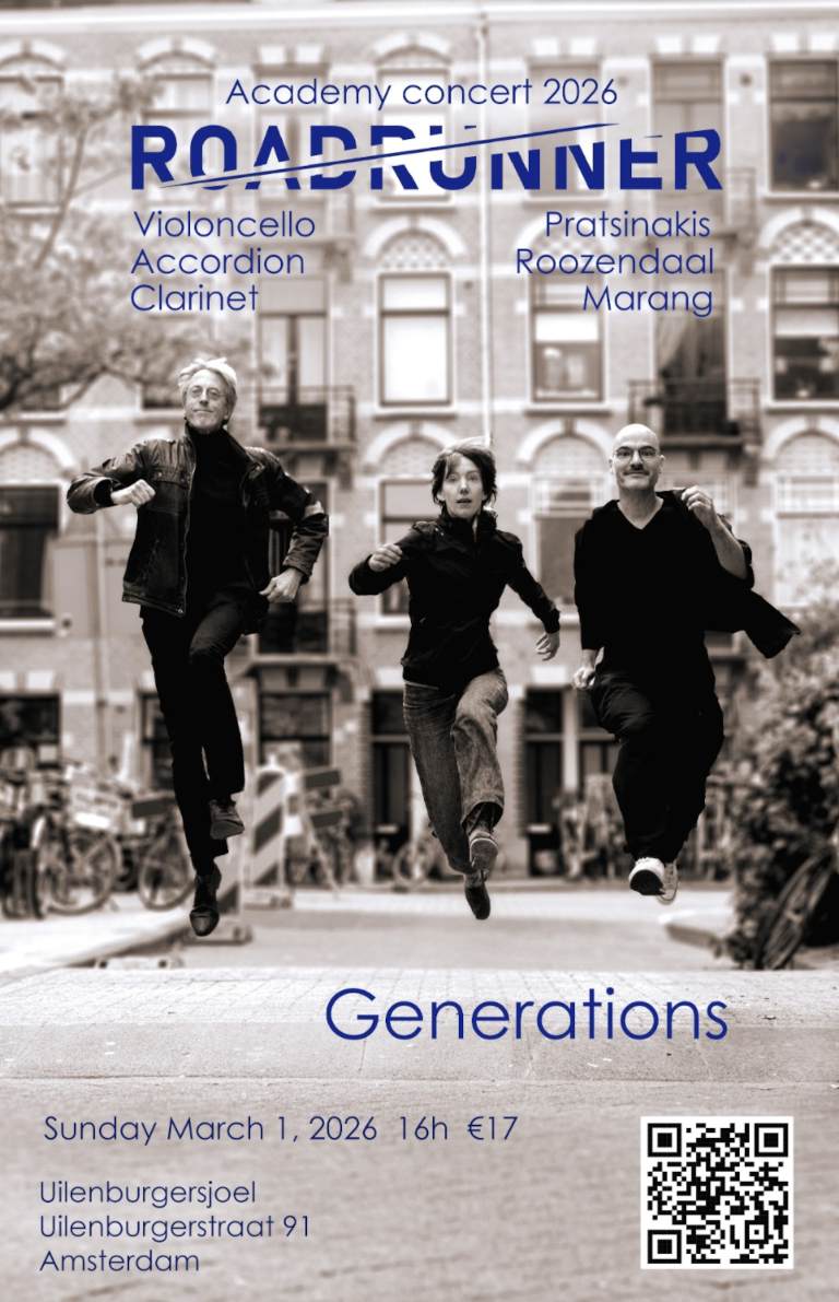 Roadrunner bestaat uit Erica Roozendaal (accordeon), Michel Marang (klarinet) en Antonis Pratsinakis (cello).