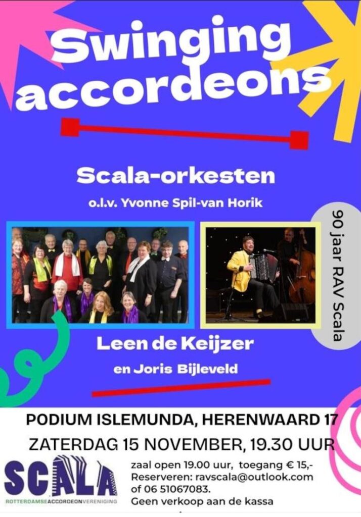 Rotterdamse Accordeon Vereniging Scala bestaat 90 jaar en is daarmee een van de oudste accordeonverenigingen van Nederland. Dit vieren zij met een concert.
