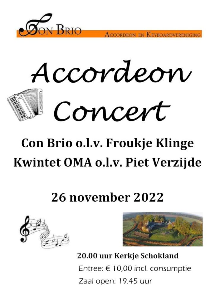 Accordeon ensemble van Con Brio onder leiding van Froukje Klinge en online accordeon kwintet OMA onder leiding van Piet Verzijde verzorgen samen een concert na de corona stilte. OMA is in de corona tijd gestart met online repetities en gaan nu live spelen.
